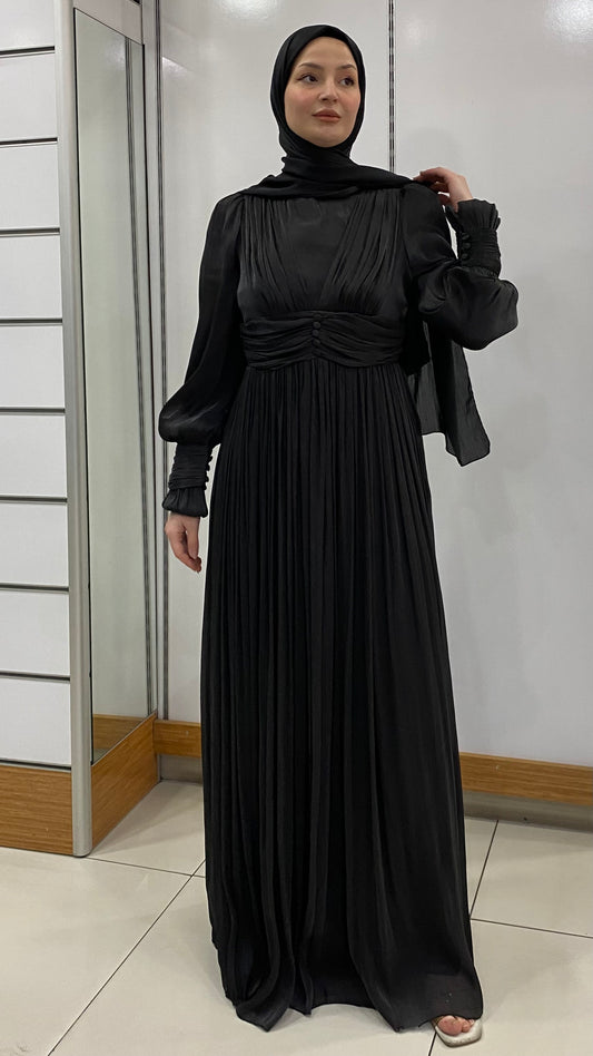 Önü Düğme Detaylı Kolu Manşetli Abiye Siyah