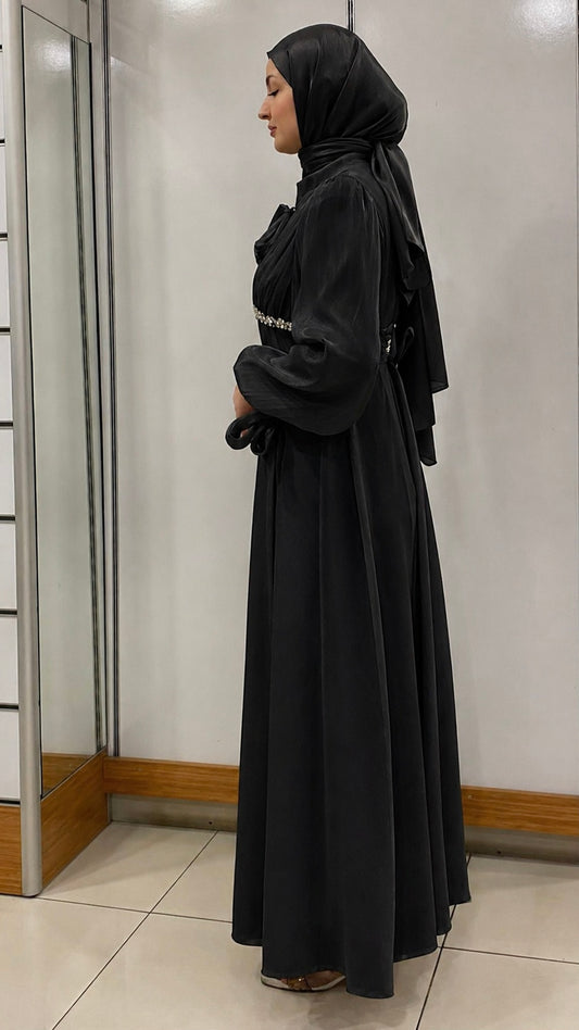 Beli Taş tasarımlı Fenomen Abiye Siyah