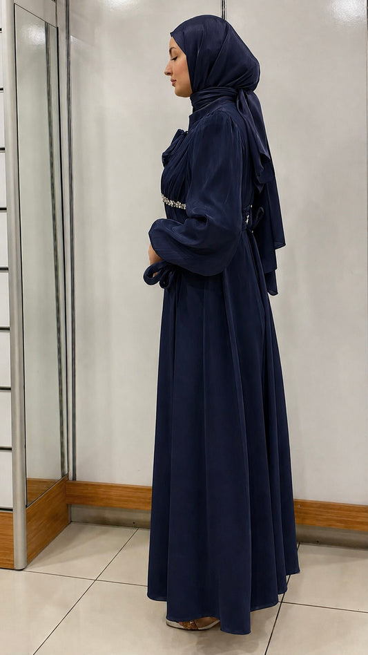 Beli Taş tasarımlı Fenomen Abiye lacivert