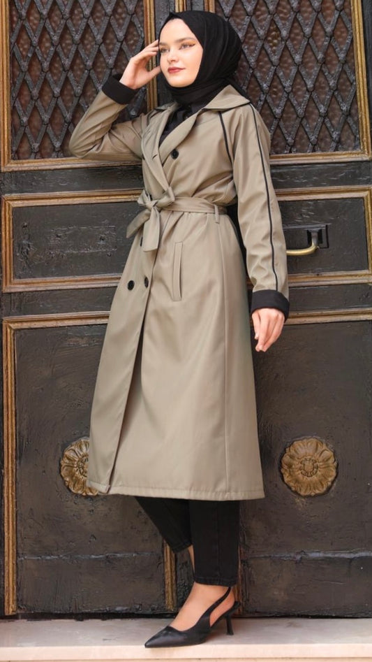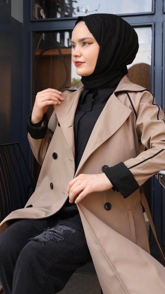Çizgi ve Düğme Detaylı Trenç Vizon