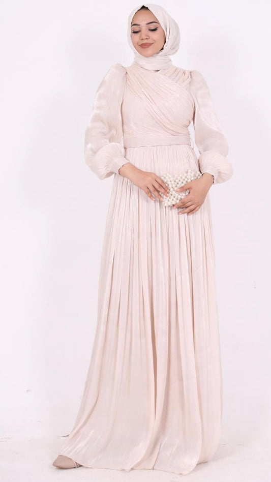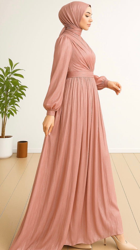 Simetrik Kesim Piliseli Elbise Gül Kurusu