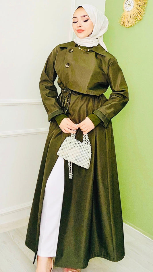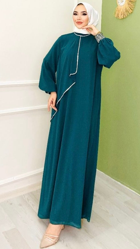 Simetrik Kesim Taş Detaylı Abiye Yeşil