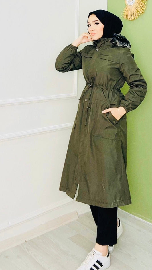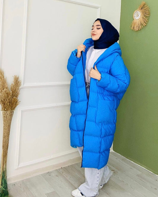 Tam Boy Çift Cepli Şişme Mont Mavi