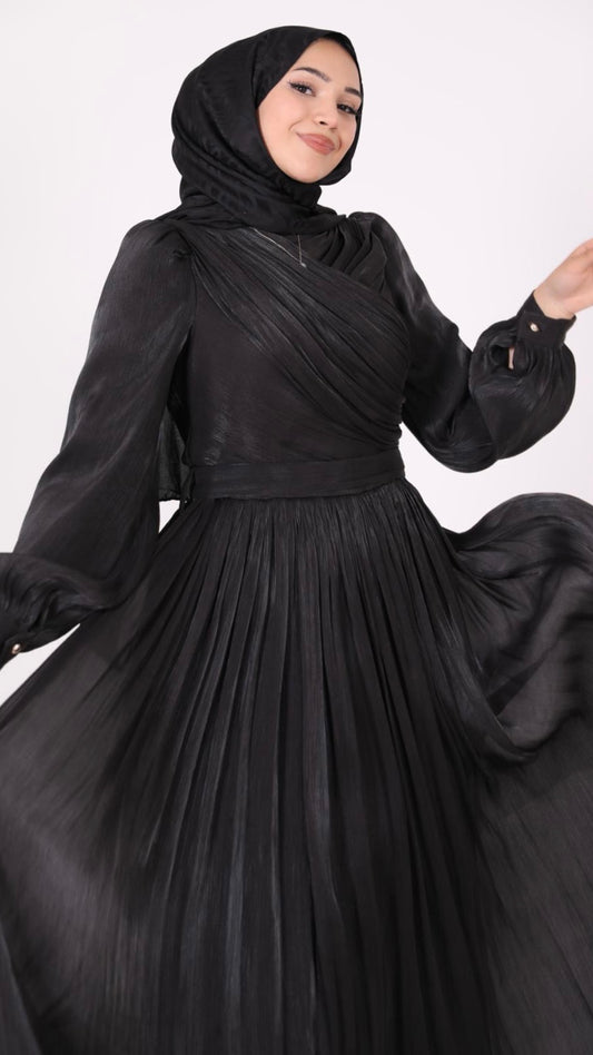Simetrik Kesim Taş Detaylı Abiye Siyah