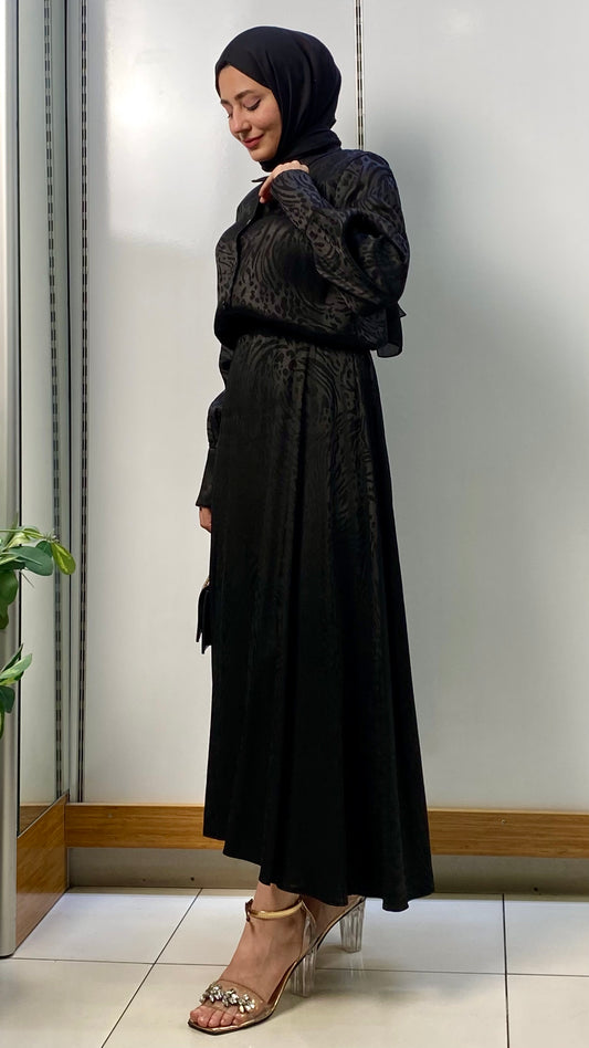 Yakası Taşlı Kuşaklı İkili Takım Siyah