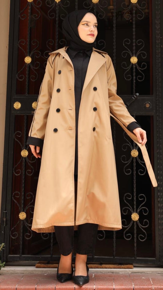 Çizgi ve Düğme Detaylı Trenç Vizon