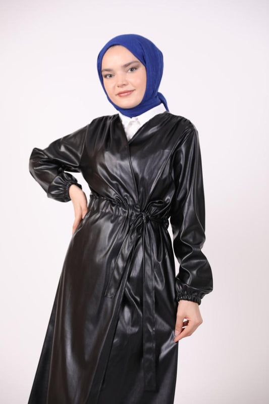 Beli Bağlamalı Deri Kap Siyah