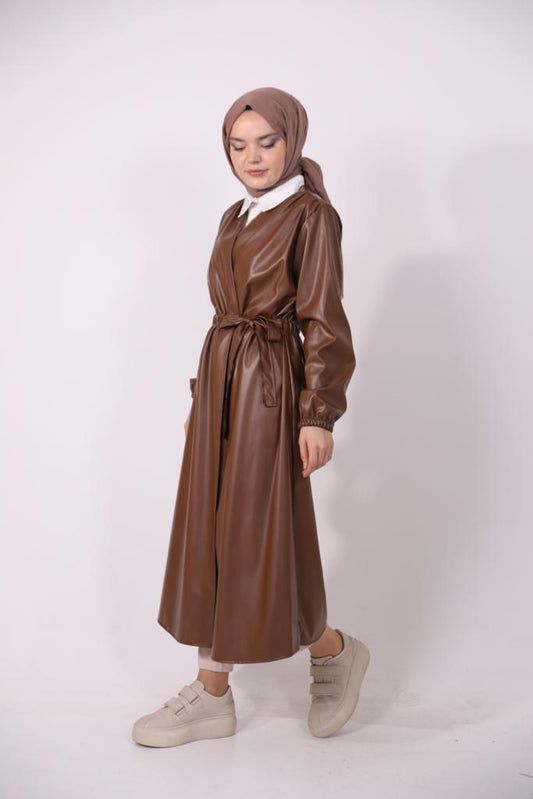 Beli Bağlamalı Deri Kap Kahve