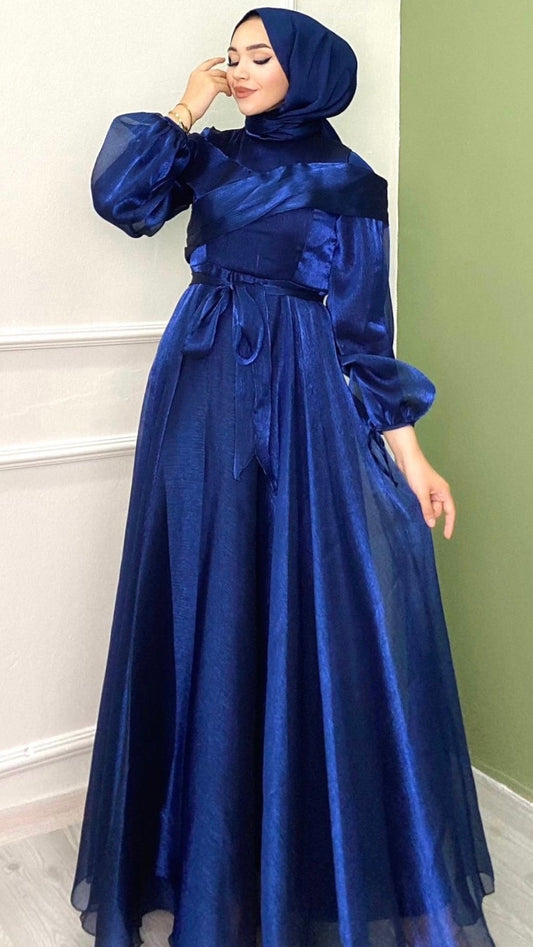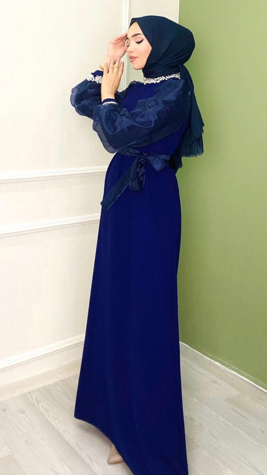 Organize Kol Yaka ve Bilek Taşlı Abiye Lacivert