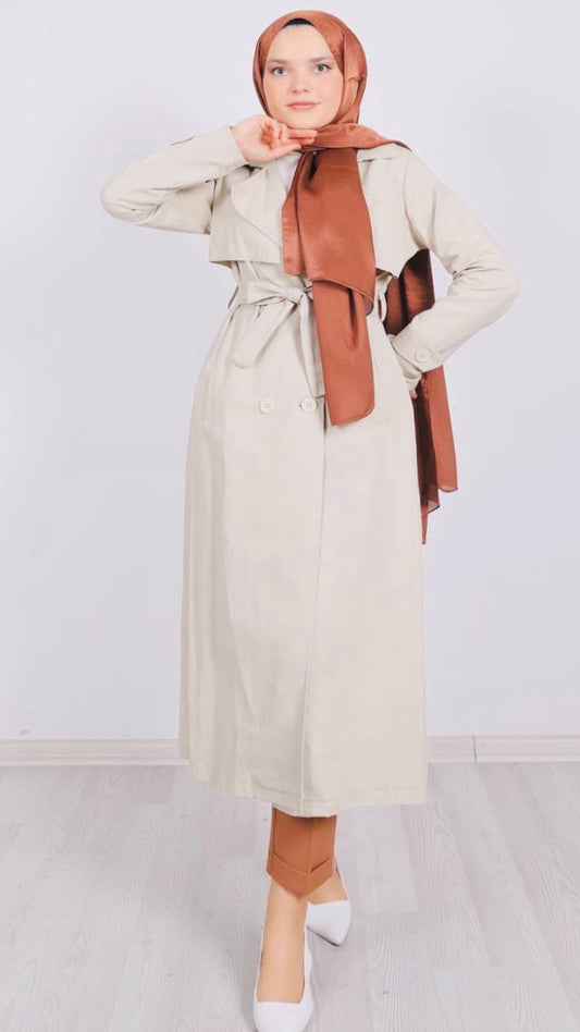 DÜĞMELİ VE BAĞCIKLI BAYAN ELBİSESİ BEJ