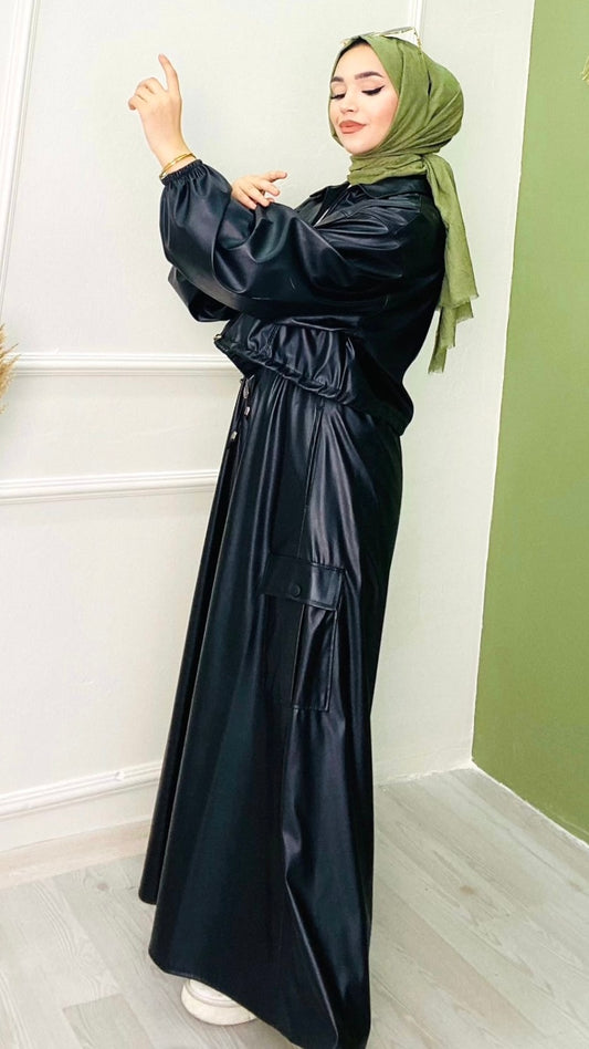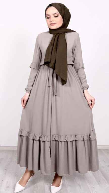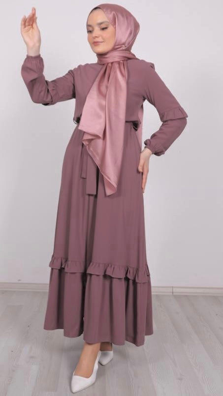 Dusty Rose Abaya with Frilled Skirt and Sleeves