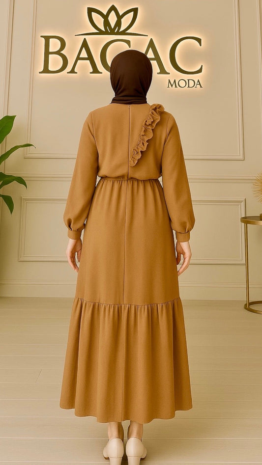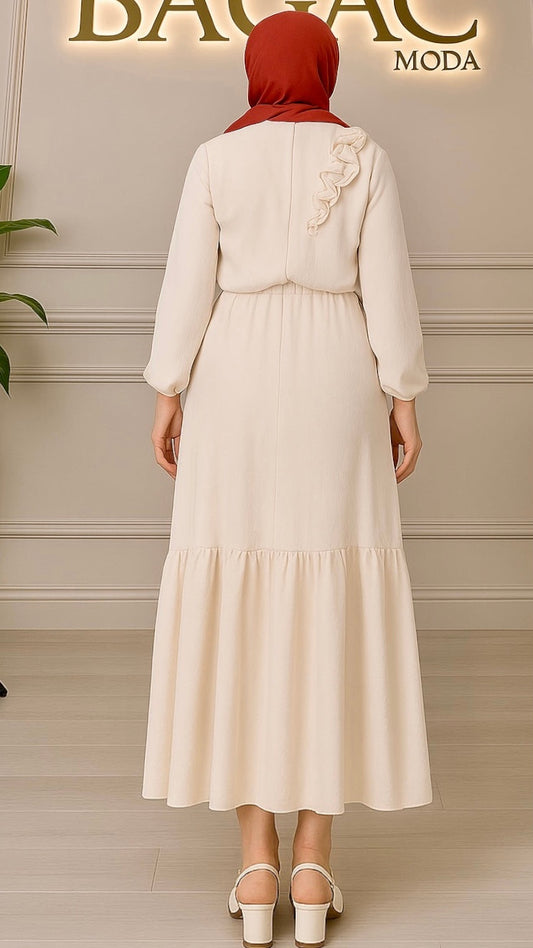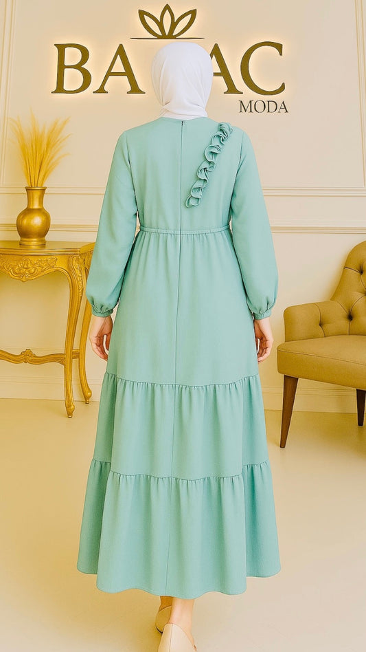 Fırfır Detaylı Taşlı Elbise Su Yeşili