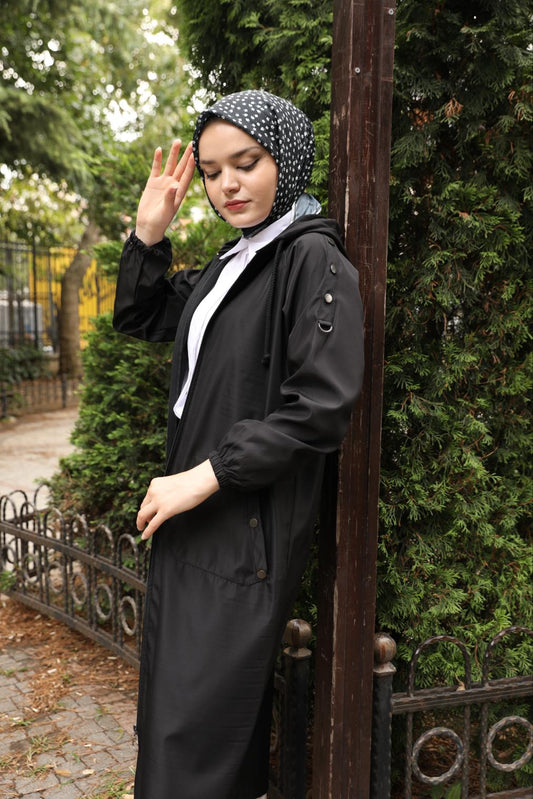 Fermuarlı Ayrobin Kumaş Kap Siyah