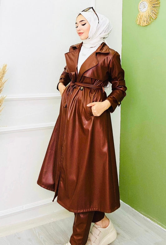 Sold outÖnü Pelerinli Deri Trenç Siyah