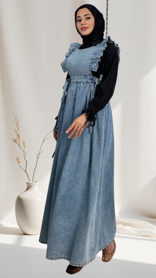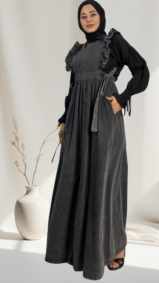 DÜĞMELİ VE BAĞCIKLI BAYAN ELBİSESİ SİYAH