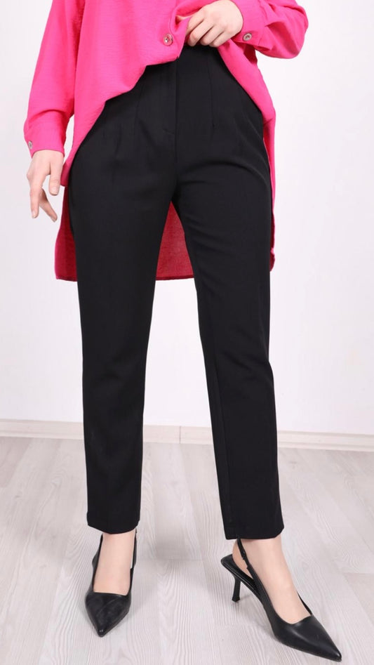 Kalın Çizgili Çıtçıtlı Pantolon Siyah