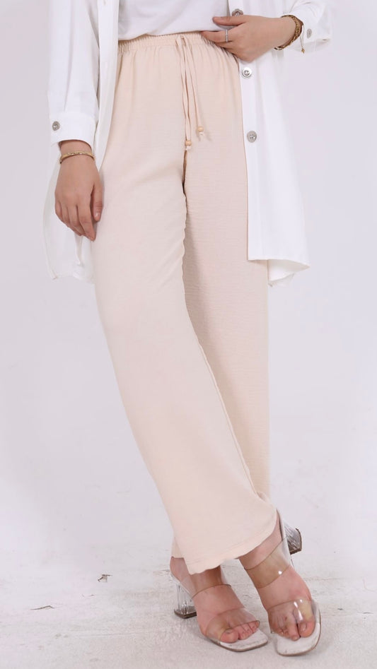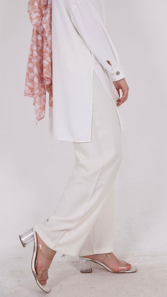 Beli Lastikli Ayrobin Pantolon Beyaz