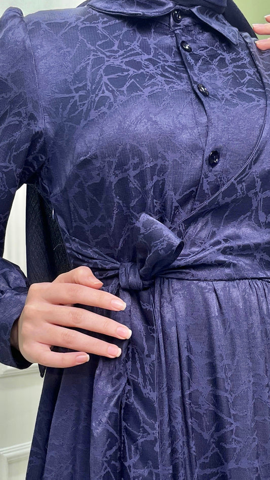 Önü Düğmeli ve Yandan Bağlamalı Varanglı Elbise Lacivert