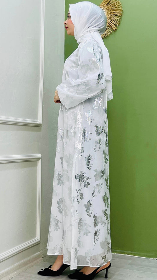 Varanglı Astarlı Balon Kol Tül Elbise Beyaz