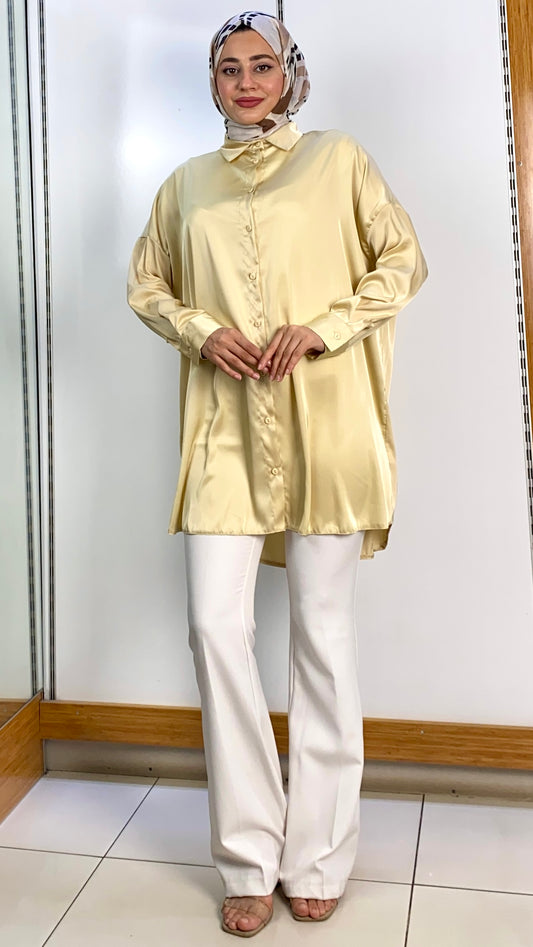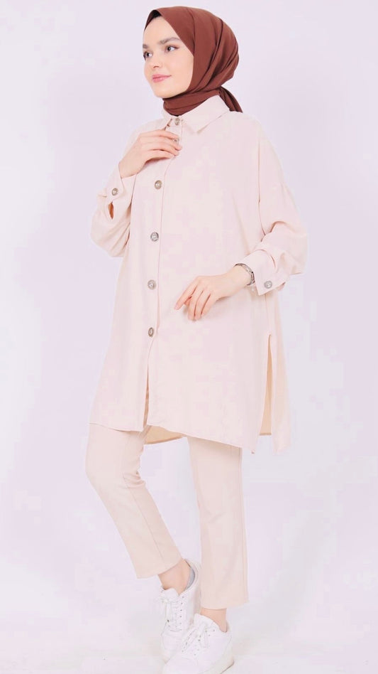 Geniş Düğmeli Ayrobin Gömlek Bej