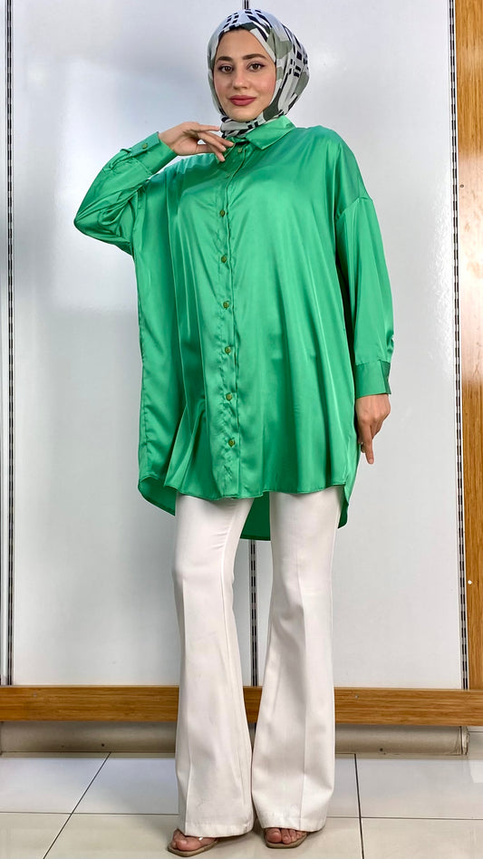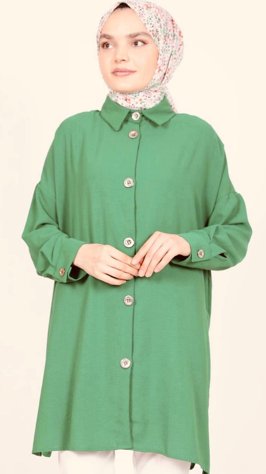 Geniş Düğmeli Ayrobin Gömlek Yeşil