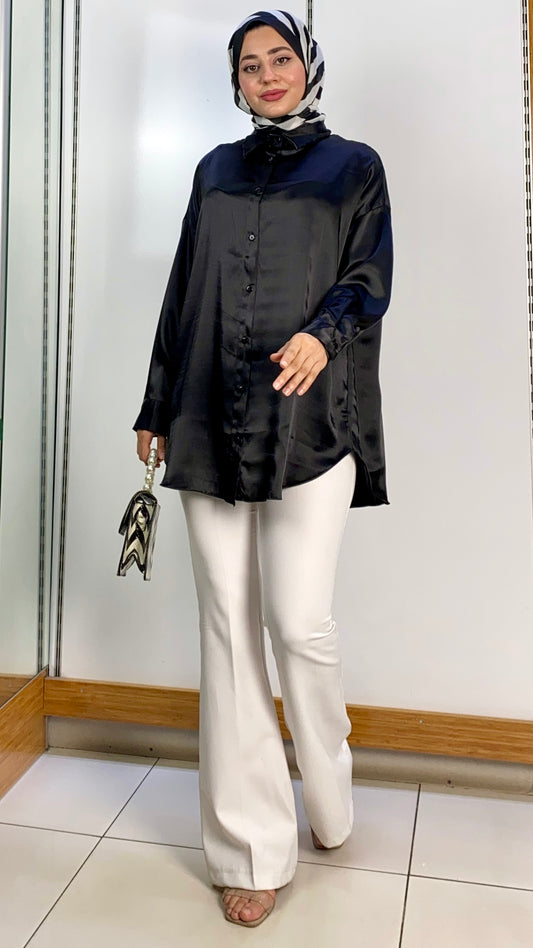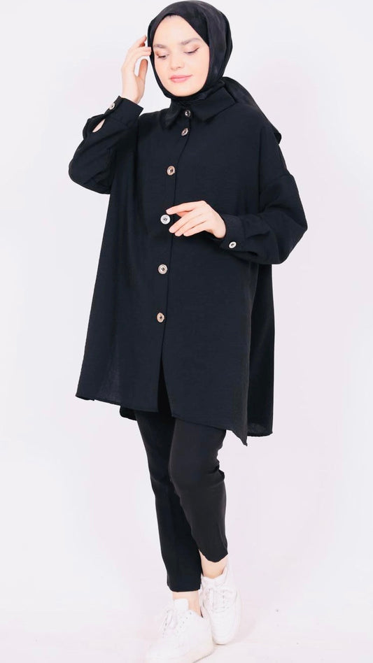 Geniş Düğmeli Ayrobin Gömlek Siyah