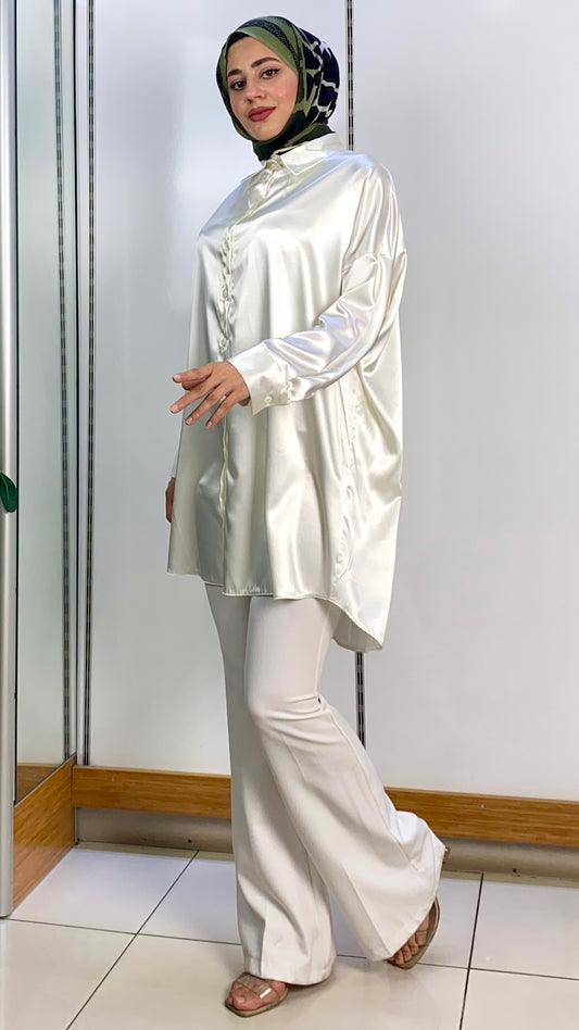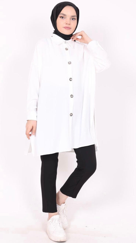Geniş Düğmeli Ayrobin Gömlek Beyaz