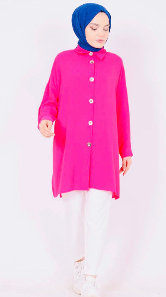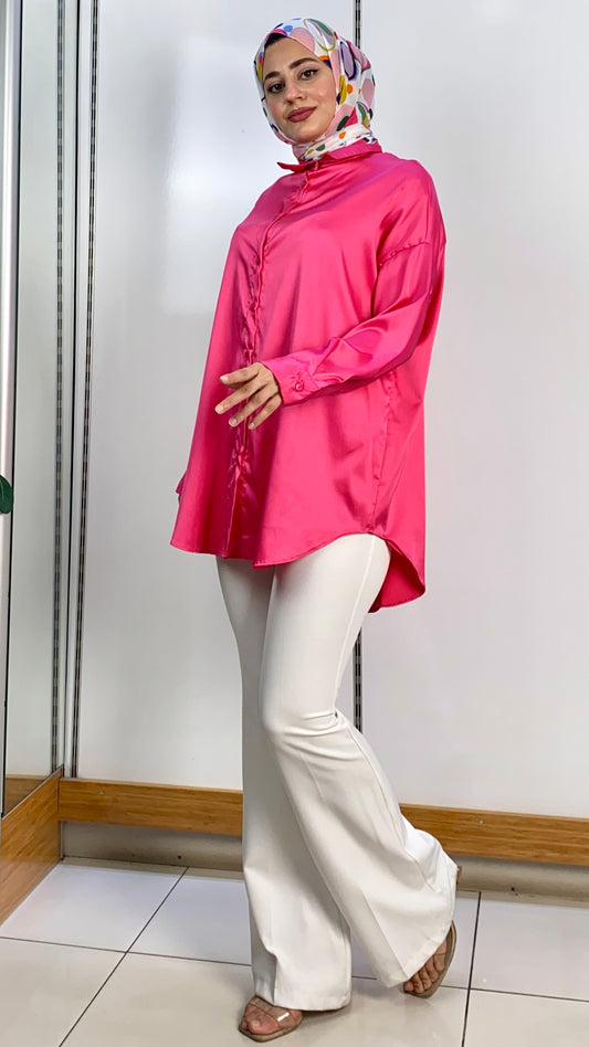 Geniş Düğmeli Ayrobin Gömlek Pembe