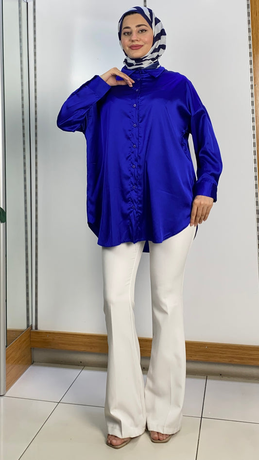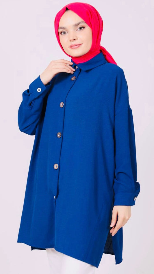 Geniş Düğmeli Ayrobin Gömlek Mavi