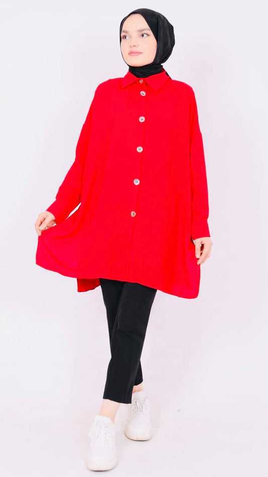 Geniş Düğmeli Ayrobin Gömlek Kırmızı