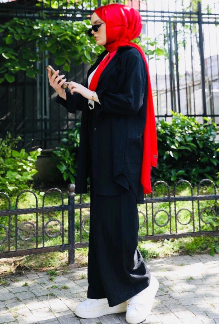 EDİTÖRÜN NOTU: Yeni sezon tek cepli tam boy düğmeli gömlek modeline sahip olan takım modelimiz günlük kullanıma uygundur. Yaz ayı için efil efil çok rahat tercih edilebilecek bir ürün. Asla terletmez. Pantolon beli lastiklidir.