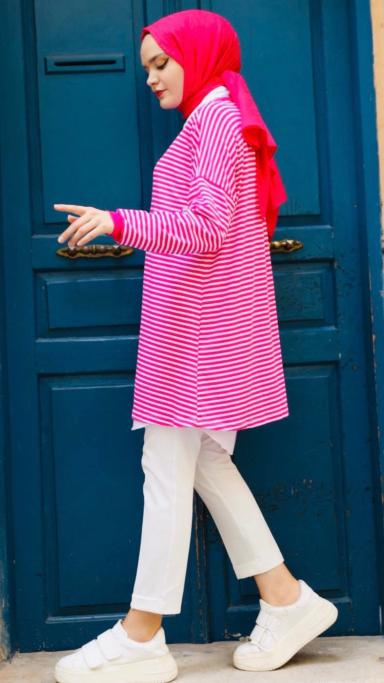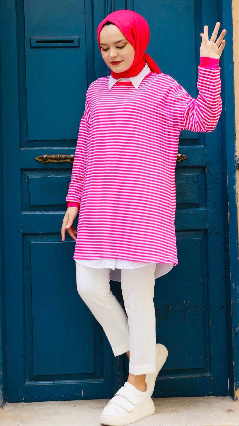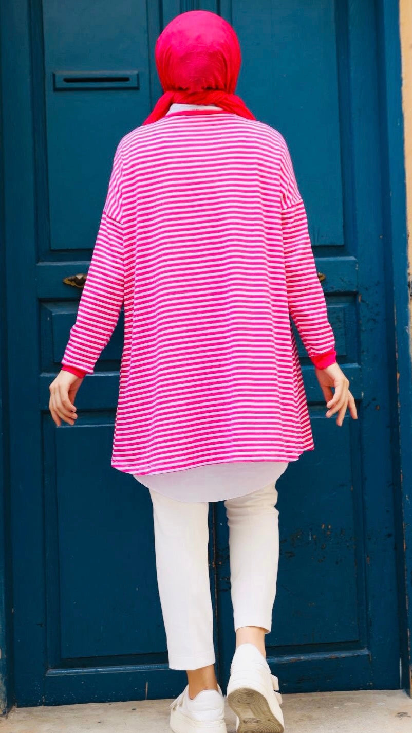 Plain Striped Sweat Pink
