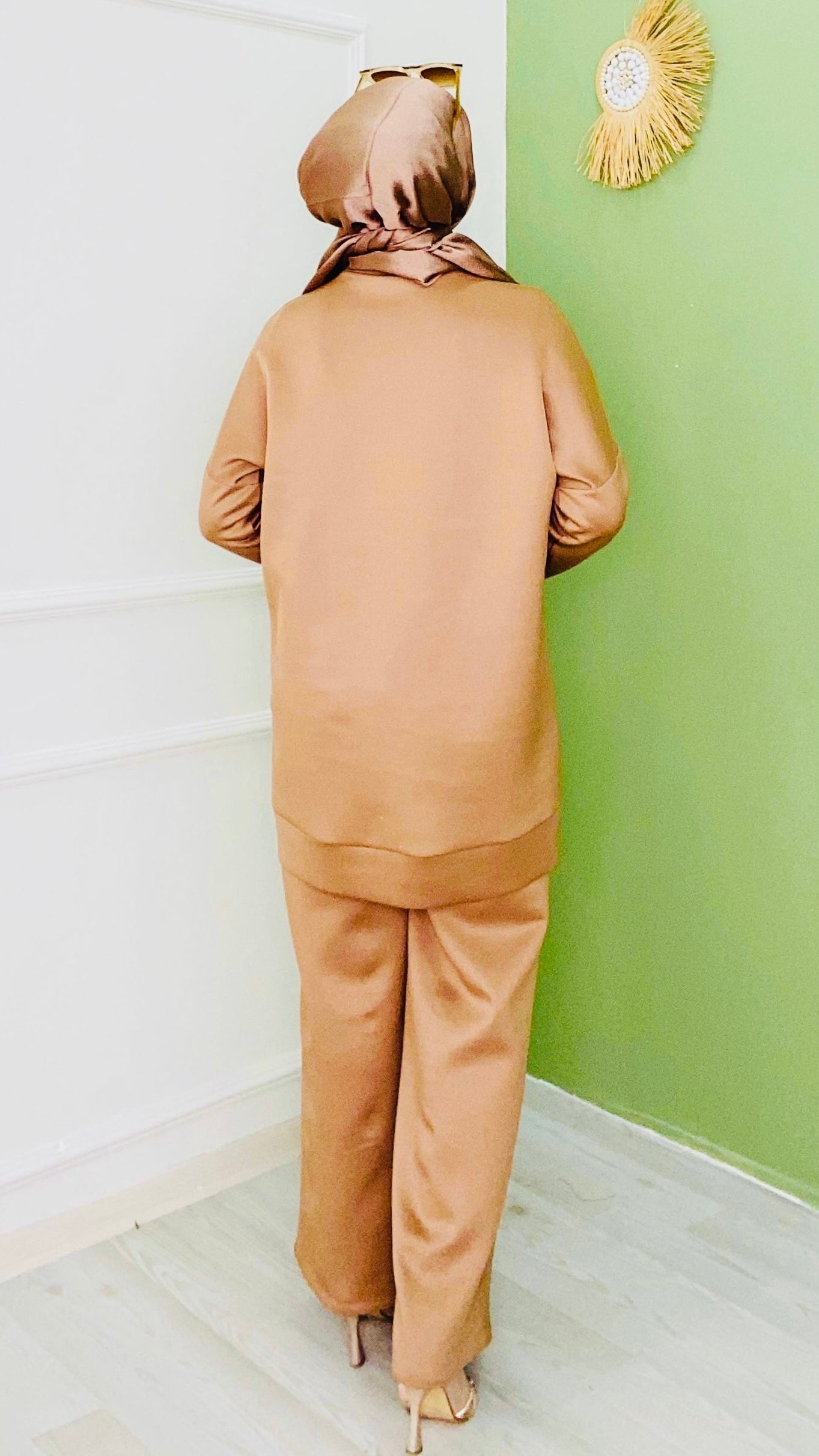 Paçası Kesik Düğme Detaylı Takım Kahve