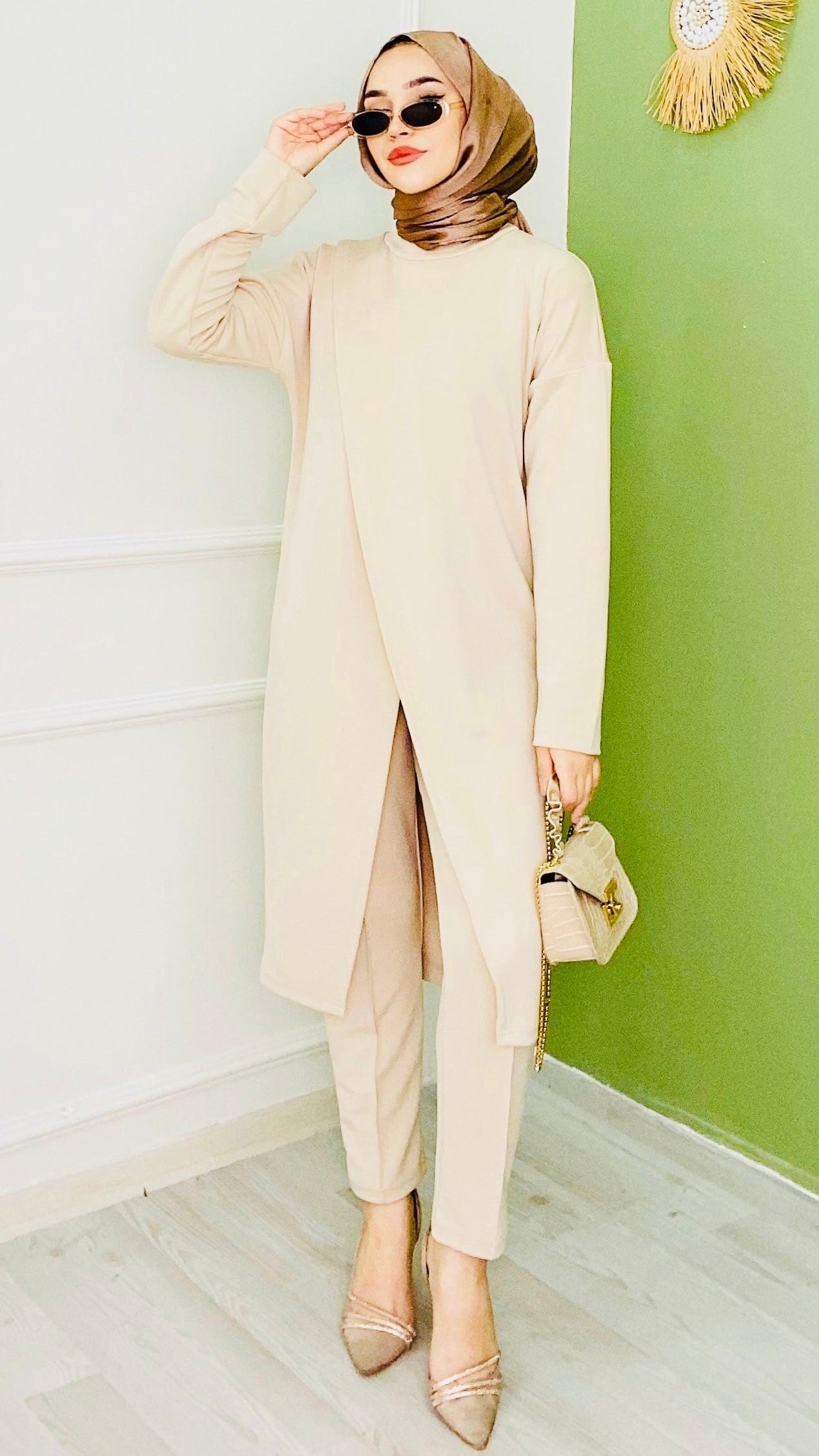 EDİTÖRÜN NOTU: Simetrik Kesim Scuba Kumaş Takım Modeli Üst Tuniği Hakim Yaka Olup Sol Omuzdan Çapraz şekilde Eteğe kadar Ayrışarak Gelmektedir Pantolonu İse Beli Lasikli Olup Önünde Belinden Paçasına Kadar dikey Biye Modellidir Klasik Severler İçin Önereceğimiz Güzel Bir Takım Modelidir Özel Günlerde ve Ayrıca çalışanlar İçinde Önerilir