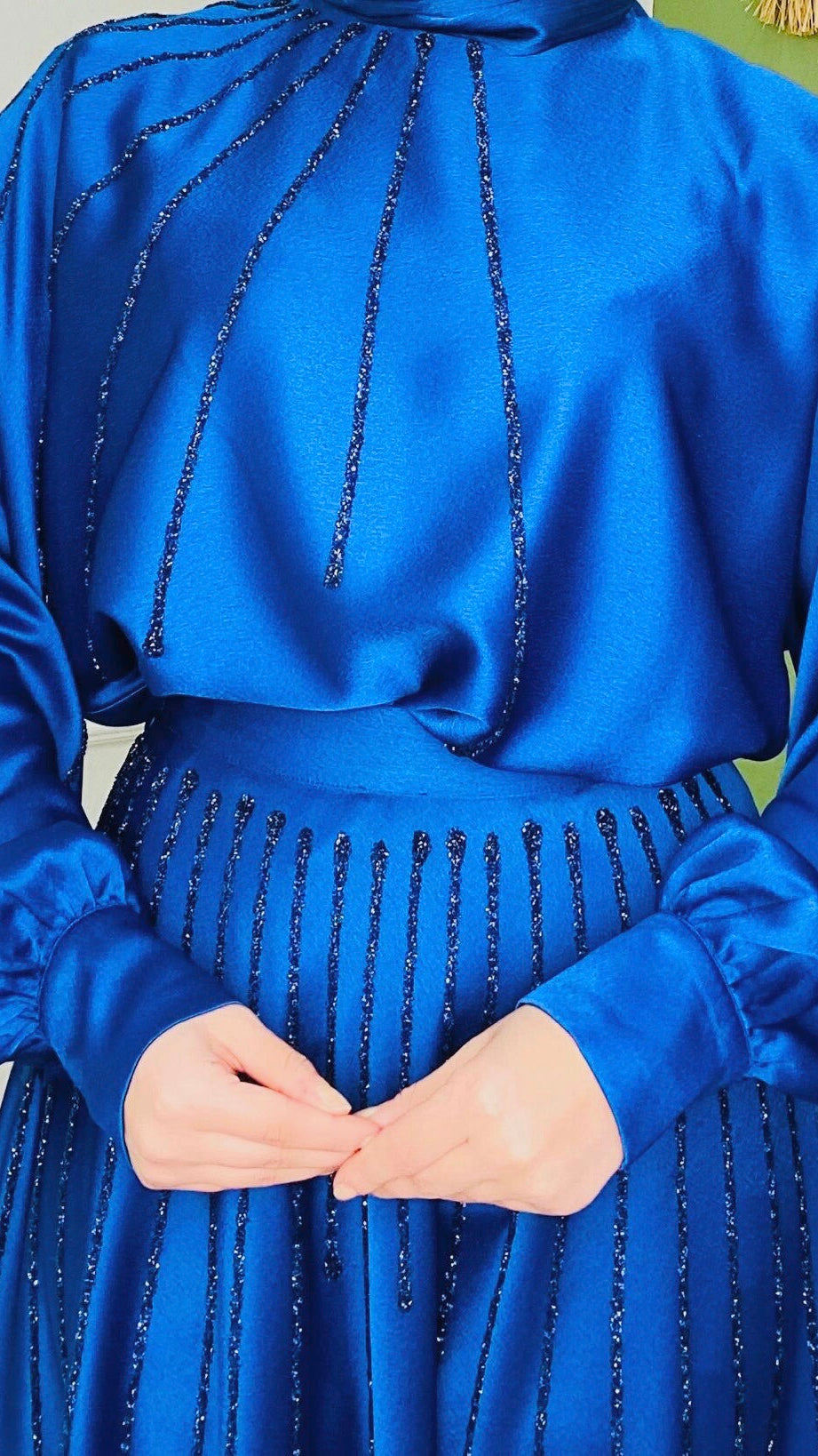 ÜRÜN ADI: Taş Detaylı Saten Etekli Takım