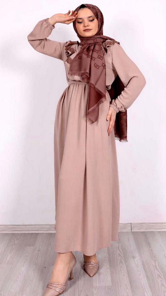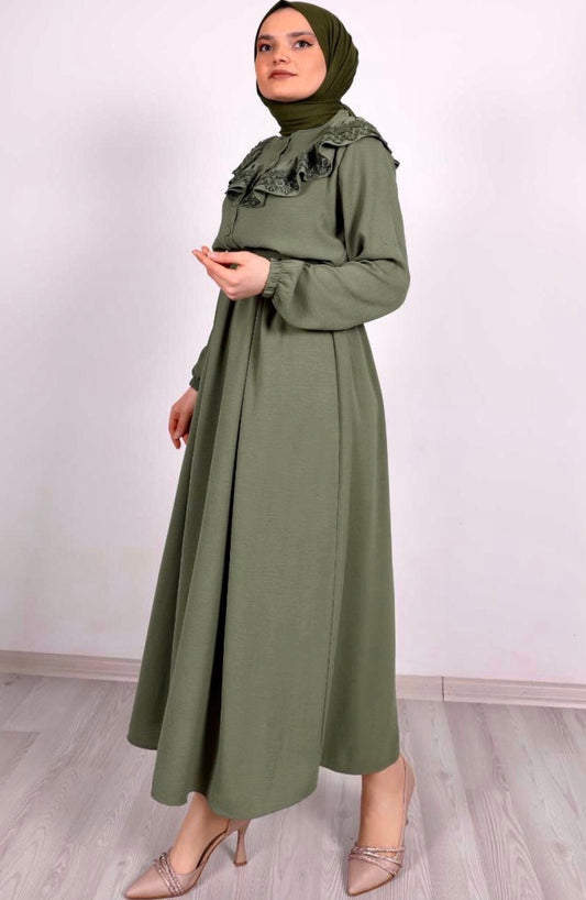 Dantel Detaylı Fırfırlı Elbise Yeşil