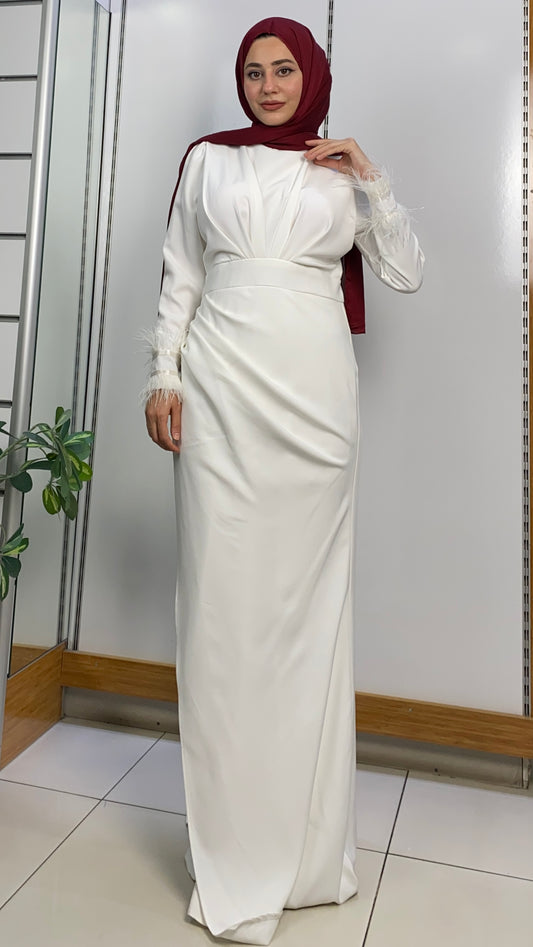 Kolu Püsküllü Önü Büzgülü Kalem Model Abiye Beyaz