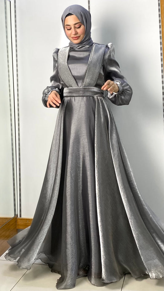 Kuşaklı Prenses Model Abiye Gri