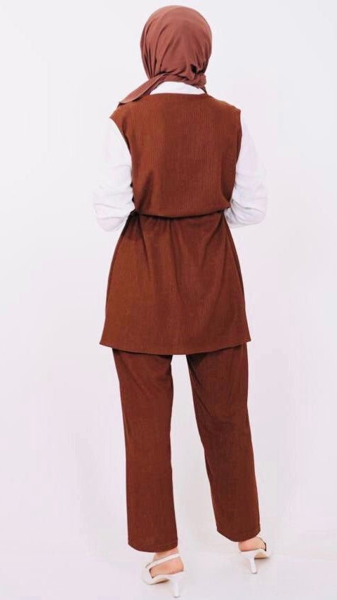 Ruffle Front Shirt Detailed Set Brown