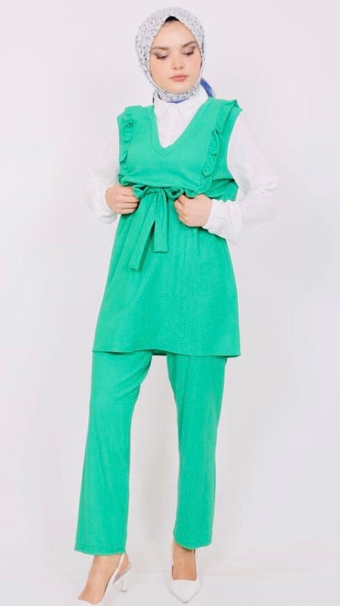 Frilly Front Shirt Detailed Suit Green