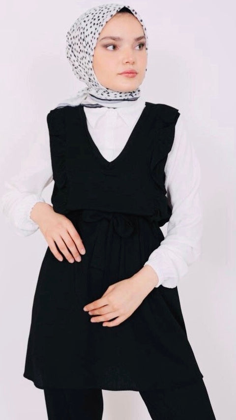 Frilly Front Shirt Detailed Suit Black