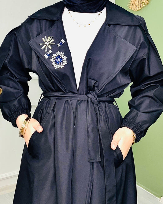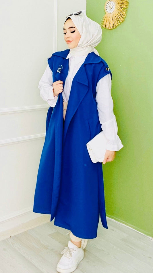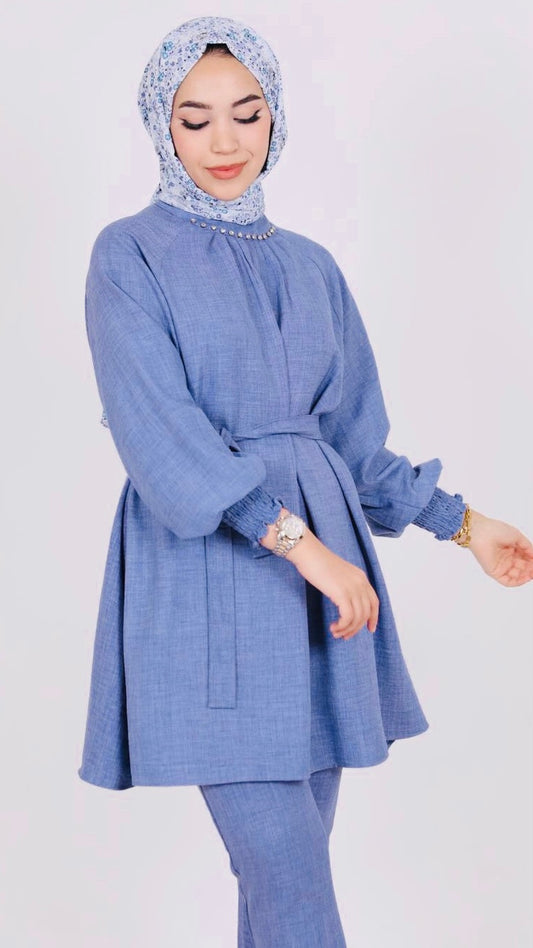 Yakası Taşlı Kuşaklı İkili Takım Mavi