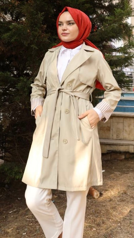 Araboy Çizgili Trenç Bej