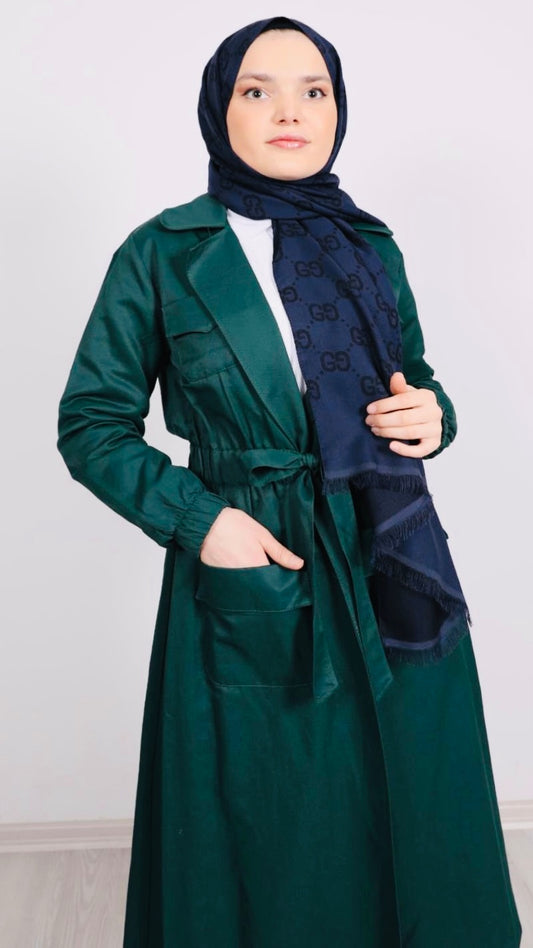 Yakası Taşlı Trenç Yeşil