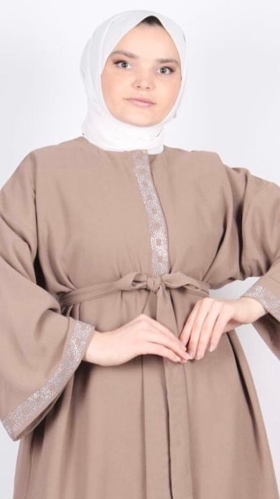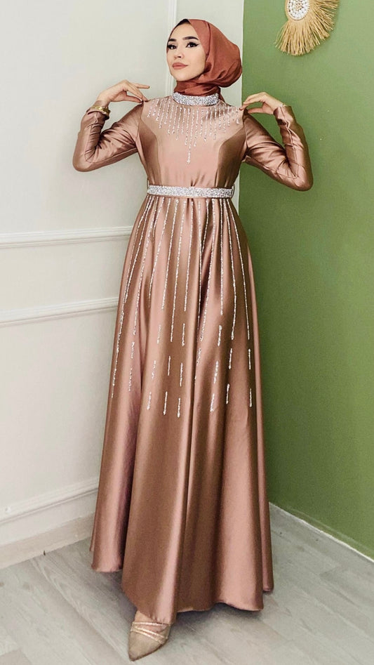 Boğazı Taşlı Dikey Taş Tasarımlı Abiye Somon