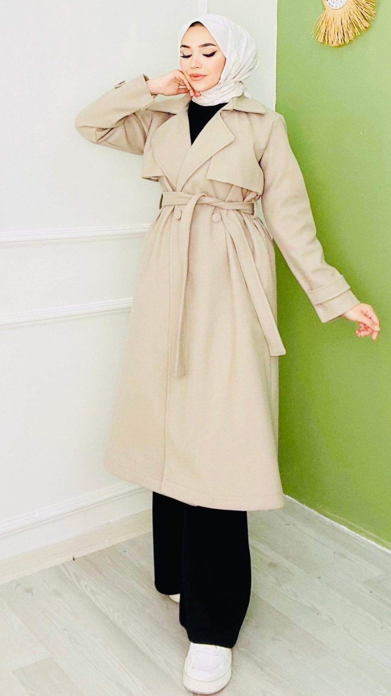 ÜRÜN ADI: Düğme ve Kemerli Model Kaşe Kaban