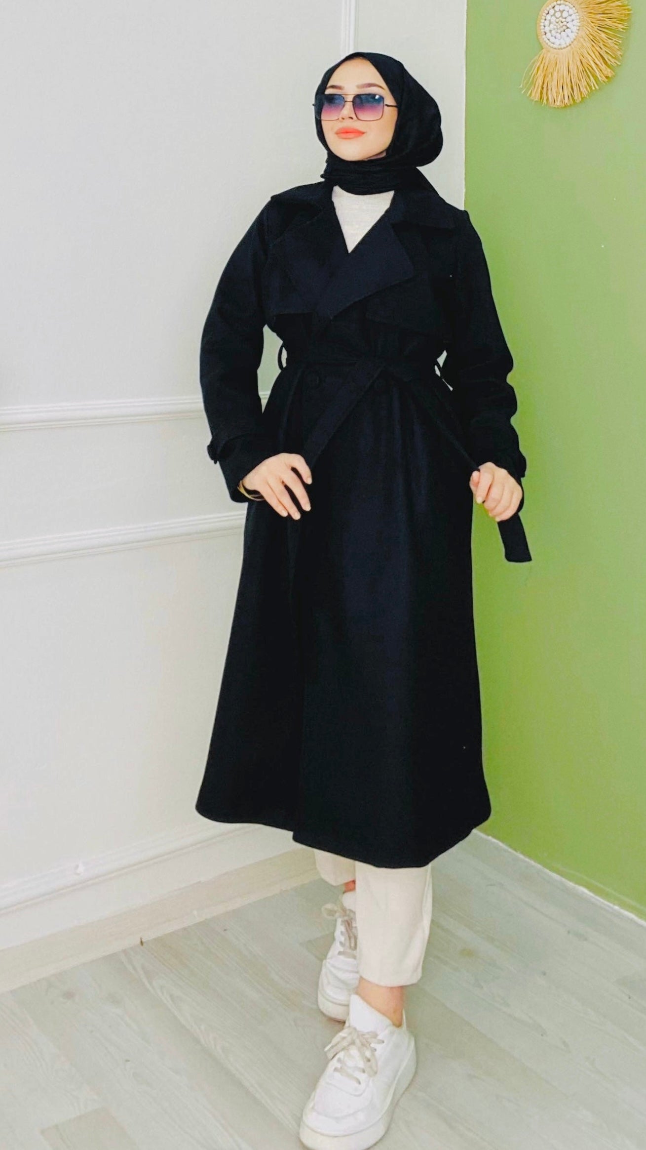 ÜRÜN ADI: Düğme ve Kemerli Model Kaşe Kaban