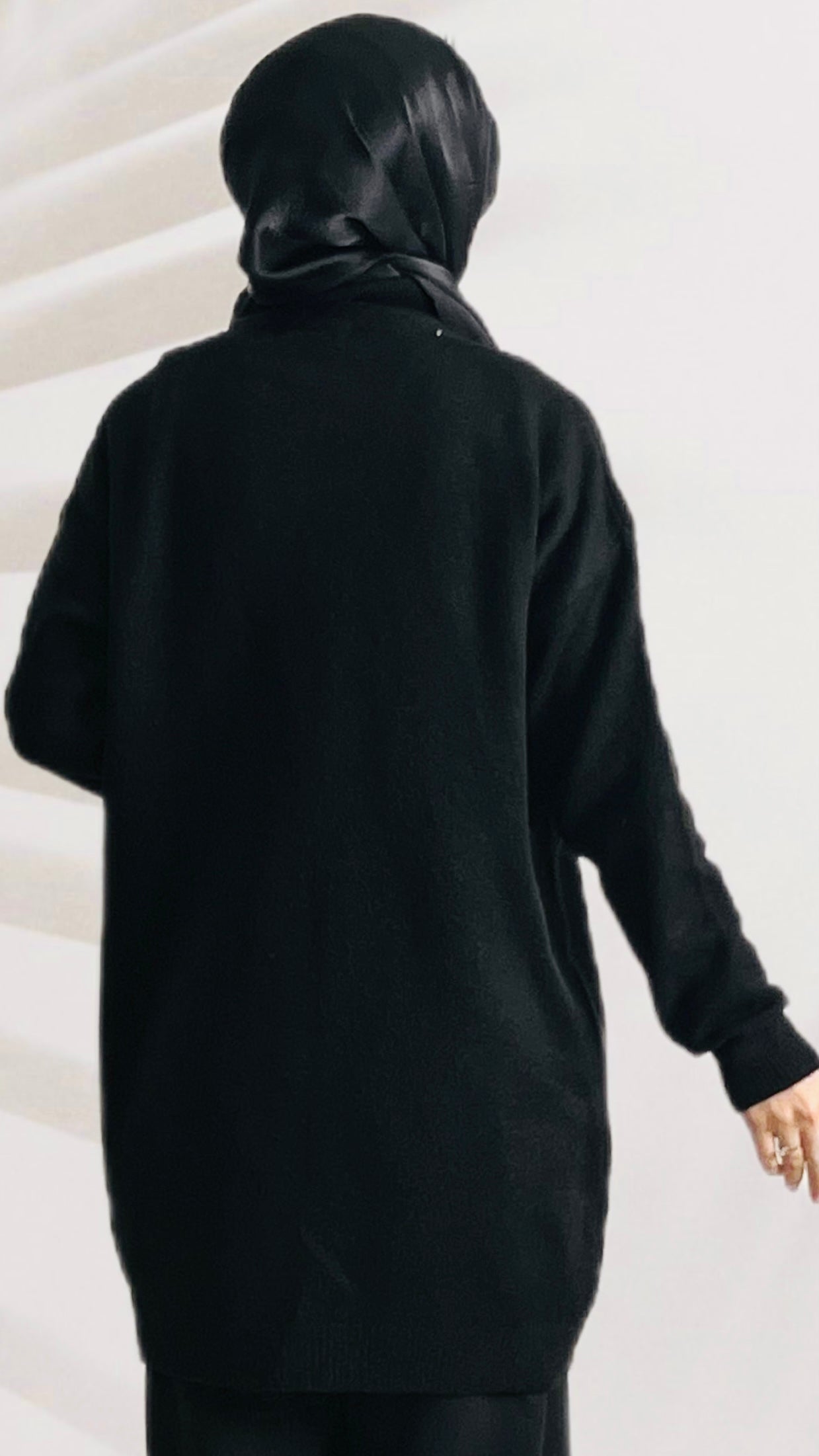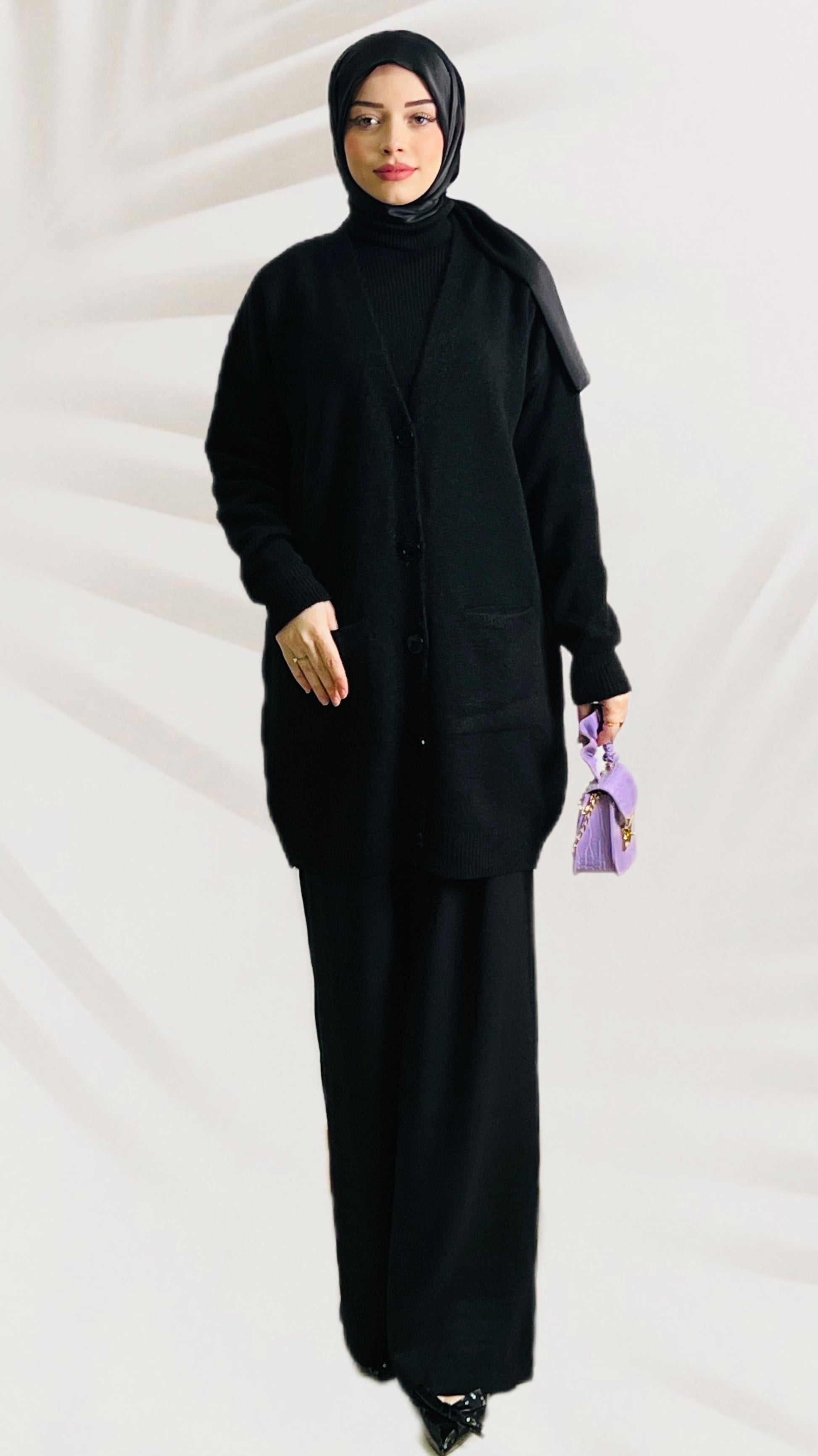 Cepli ve Düğmeli Araboy Hırka Siyah