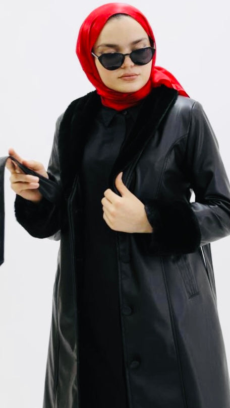 ÜRÜN ADI: Kolu ve Yakası Kürklü Deri Kap
