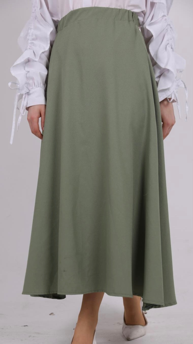 Beli Fermuarlı Krep Kumaş Kiloş Etek Yeşil